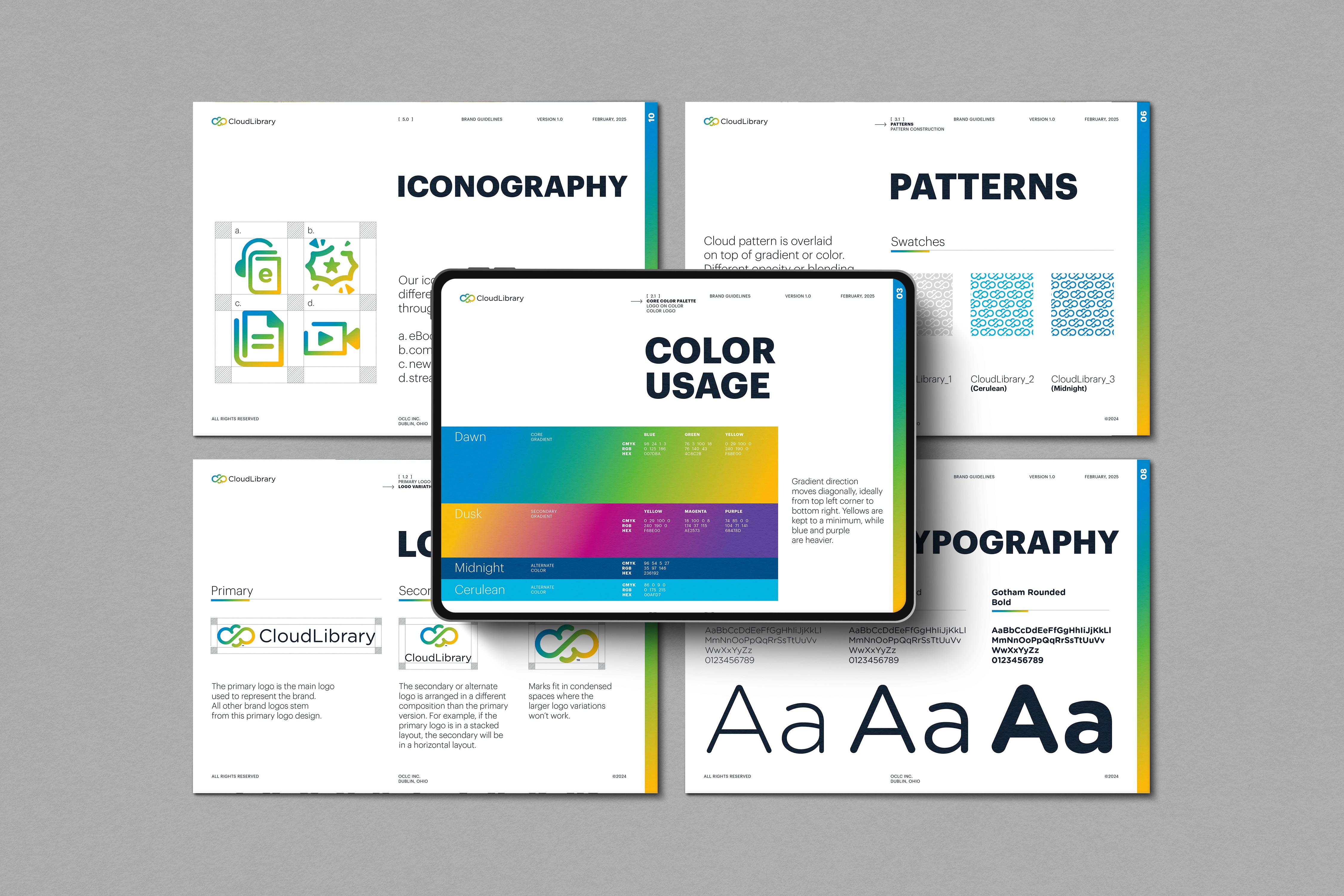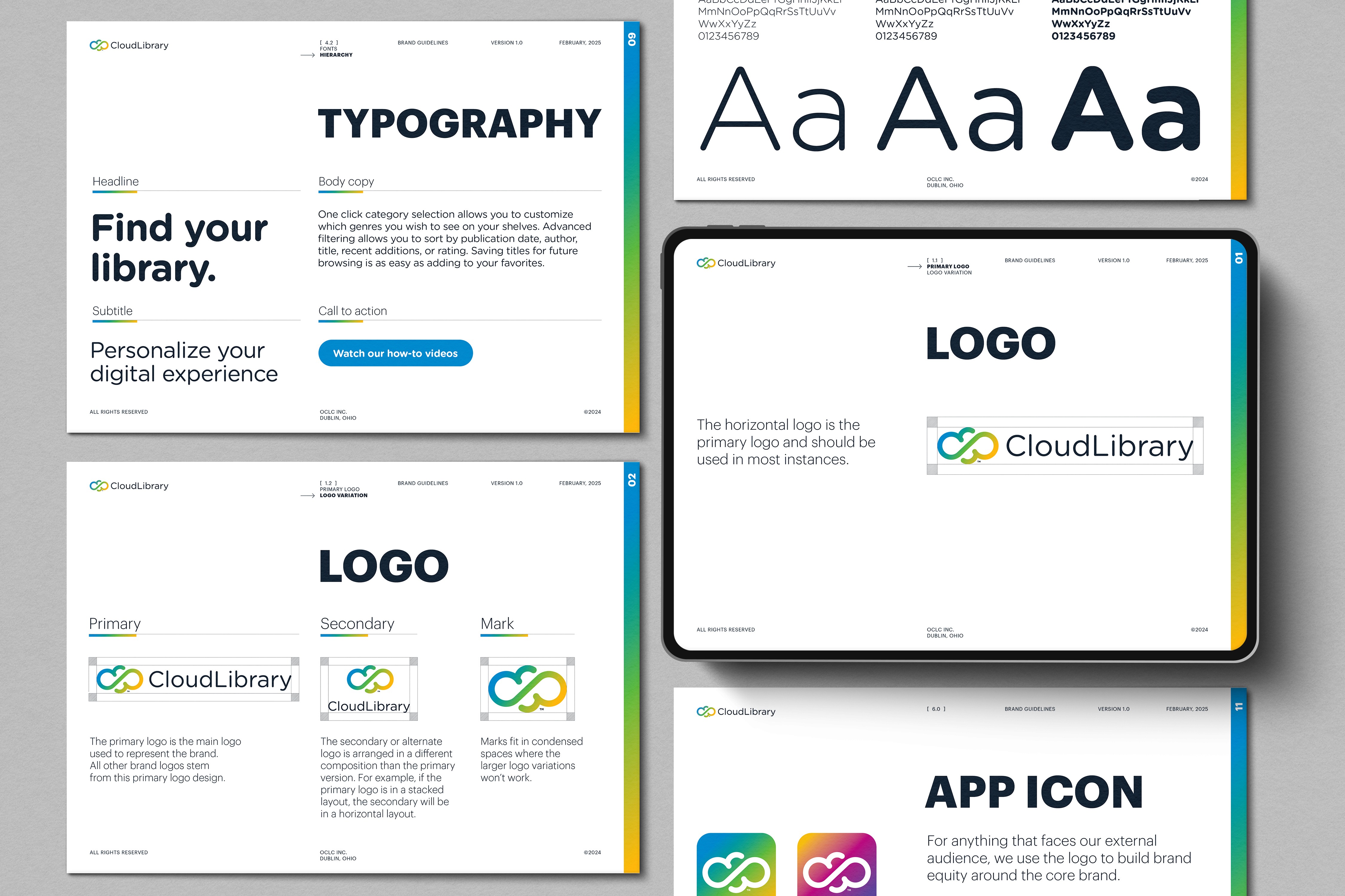 Prior to the acquisition, the CloudLibrary branding was outdated. The app was getting lost as a potential offering because of its archaic design approach. The challenge was to bring some visual consistency within the OCLC suite of products, making use of the corporate branding, while modernizing the visual identity.