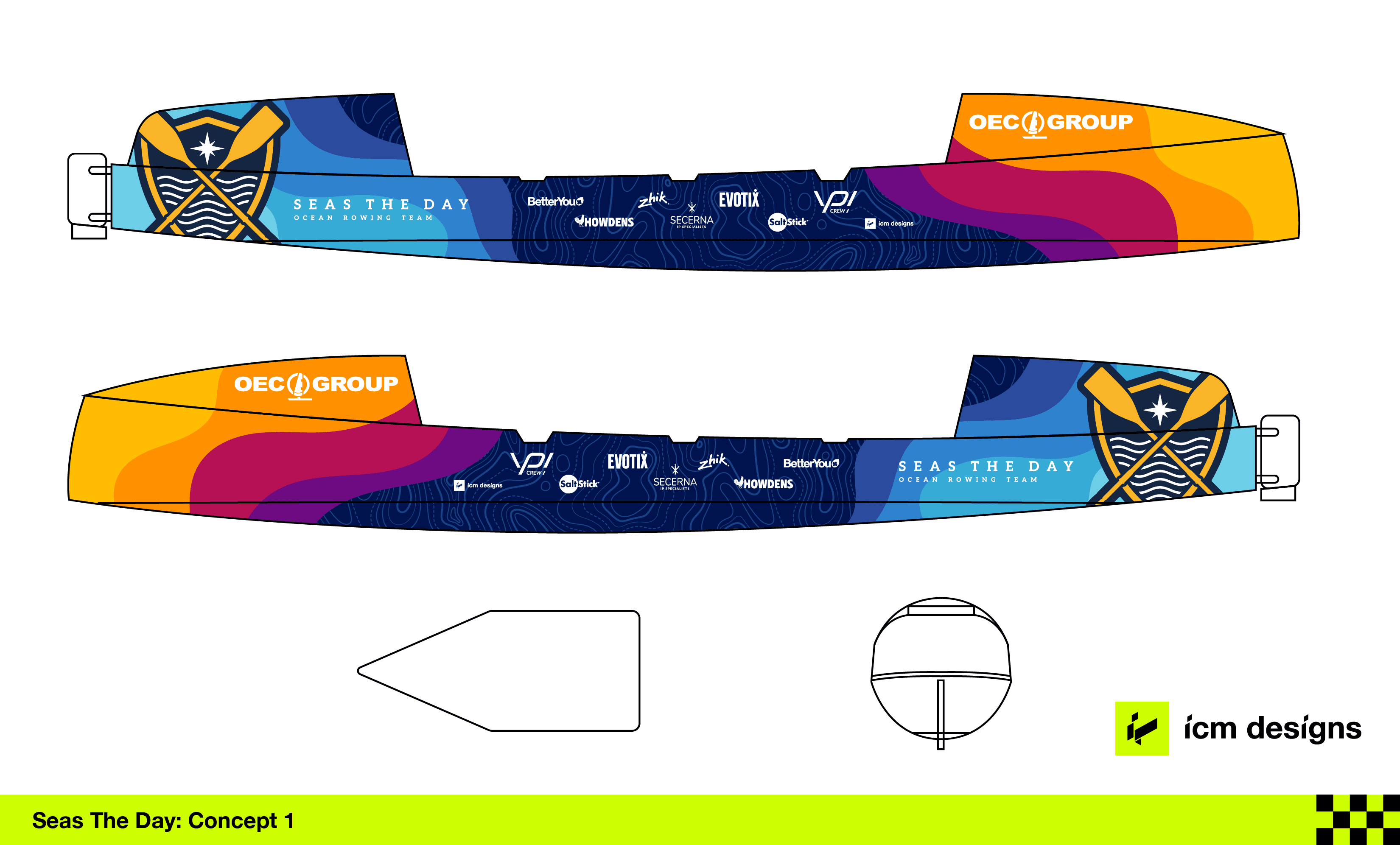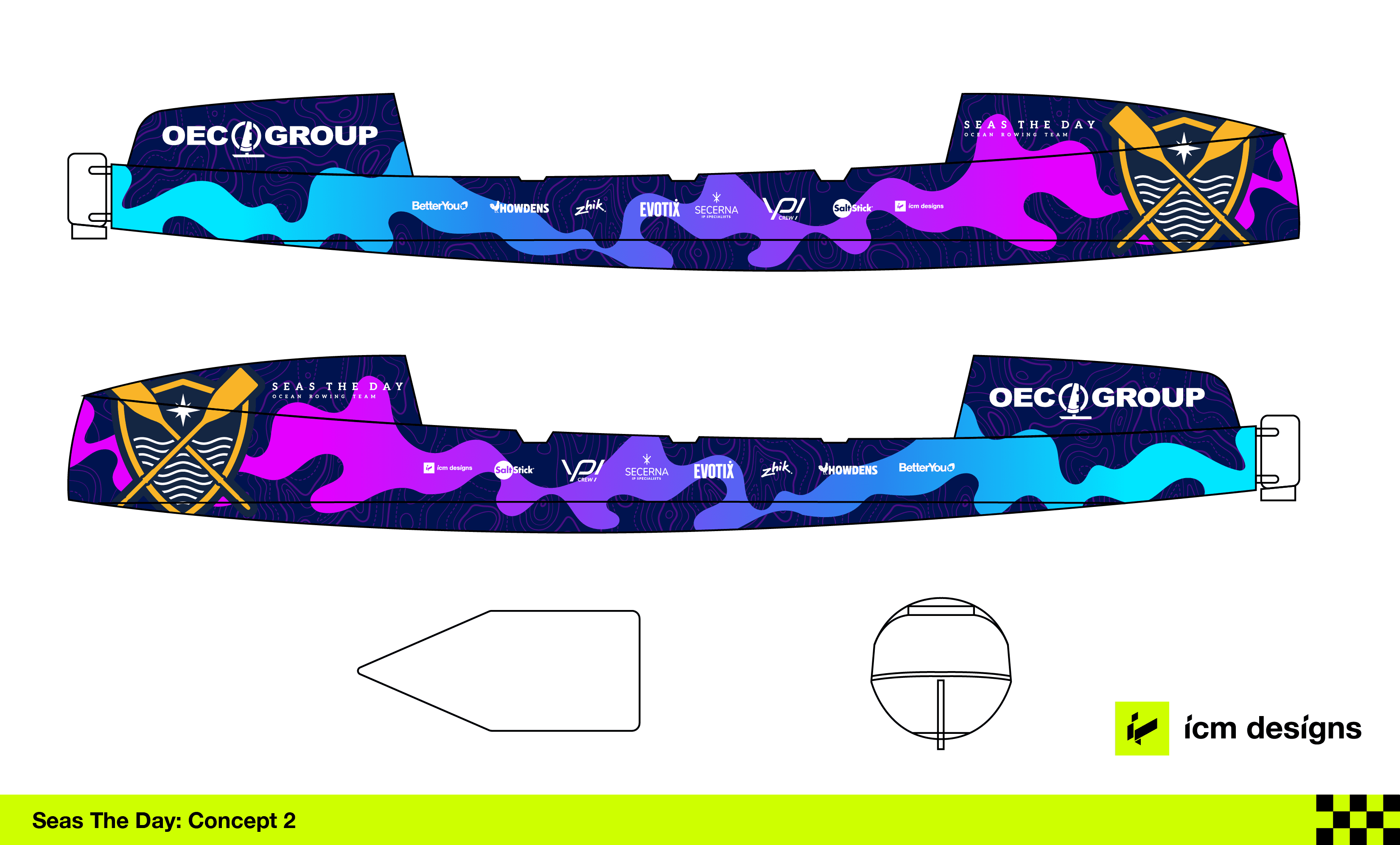 Designing the row boat also had to be practical. Certain colors affected temperature, so we couldn't use anything dark that would heat up the rowers during the day, and over cool them at night. I also wanted the colors to be vibrant from far away. We used silver at the bottom of the boat to reflect light and heat, and a blue to pink gradient to be visually striking over the water.