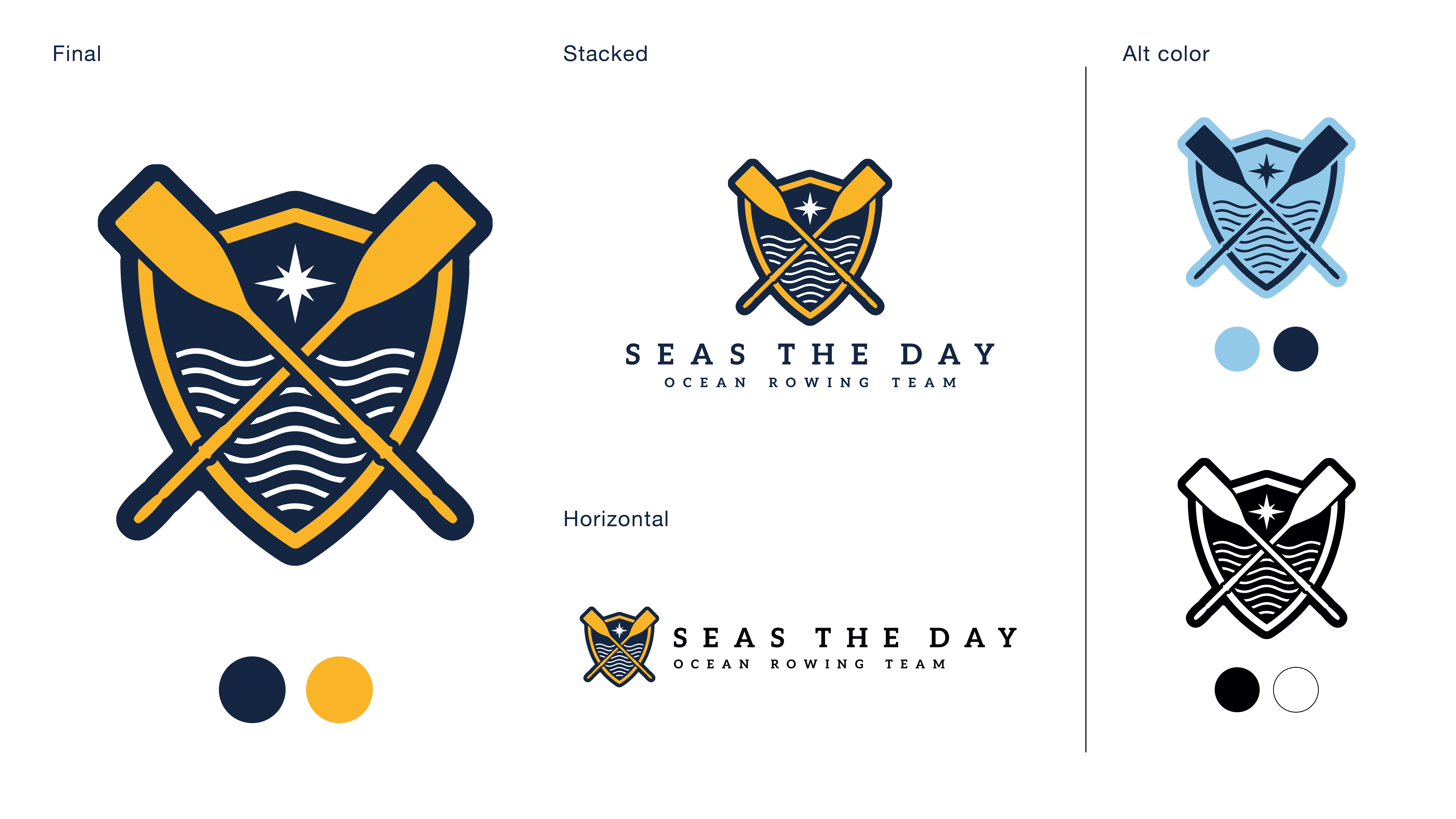 I wanted to approach the brand to be timeless and sporty at the same time. Designing the brand from scratch is always a challenge, so my end goal was to create a mark that can would establish a legacy. The use of the shield on the mark signifies the strength of the rowers, the two oars representing Miriam and Jess, and the north star being their goal and direction.
